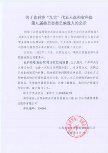 关于省科协“九大”代表人选和省科协第九届委员会委员候选人的公示